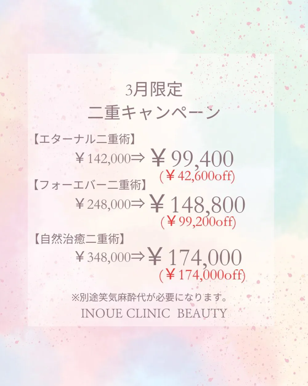 ※施術の適応は医師とのカウンセリングによって判断されます。※別途笑気麻酔代が必要になります。